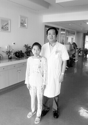 图为全腔术后的女孩小林与翁国星副院长合影。