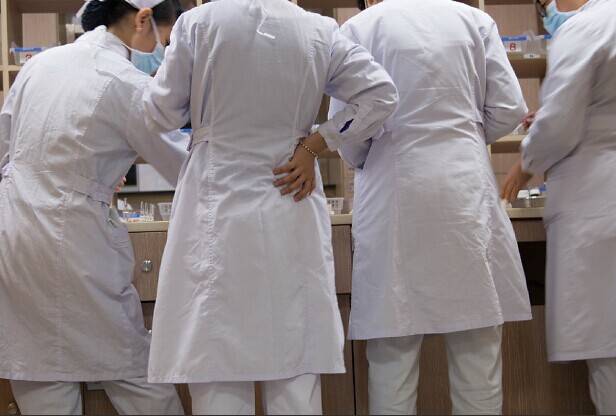 夜班,护士们要备药,上挂瓶,查看病人情况,写护理记录。在备药室,一位护士下意识地扶了一下腰。