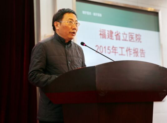 朱鹏立院长在报告中指出,2015年我院在省卫计委的领导下,以十八大、十八届五中全会精神为指导,组织开展“三严三实”专项教育,全面实施改善医疗服务行动计划、通过接受大型医院巡查、安全生产督查等提升了各项管理水平。实施药品、耗材零差率改革,医疗质量安全管理更加规范,护理服务继续改进,强化科教兴院。南院(省立金山医院)正式开业并平稳运行。2015年医院被评为第十二届省级文明单位,荣获全国首批住院医师规范化培训示范基地。林才经教授荣获“生命卫士急诊事业特殊贡献奖”,李红教授当选第七届”国家卫生计生突出贡献中青年专家”。