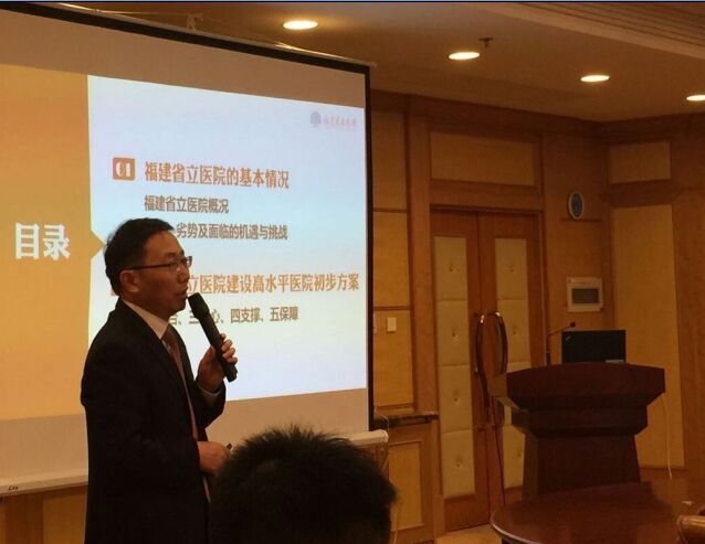 我院高度重视高水平医院的建设工作,建立了专门领导机构,连续召开会议,研究部署。我院院长朱鹏立教授从“基本情况”“建设高水平医院初步方案”两方面进行汇报。创建于1937年的福建省立医院,是福建省最早创办的公立医院之一,以“精于医术,诚于医德”为院训。现已成为我省集临床诊疗、医学教育、医学科研为一体的大型医院及主要的保健基地。“两平台、三中心、四支撑、五保障”是我院建设高水平医院的具体任务和主要措施,将在今后五年内全面实施。