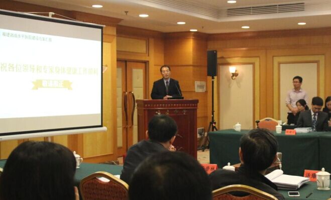 图为省卫计委陈晓春副主任主持医学中心方案汇报会