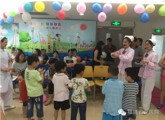 在输液大厅里,许多小朋友一手挂着留置针,一手握着画笔,认真的为自己喜欢的卡通人物填涂色彩,似乎把打针都给忘了!一旁输完液的小朋友,在游戏区一会儿骑小木马、一会儿玩兔兔球,开心的都不愿意回家了!输液厅的护士们也对家长们开展了使用留置针的健康宣教。